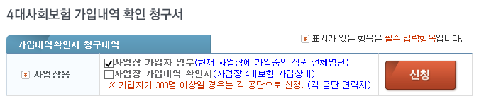4대보험 가입자명부 발급 (300인 미만 사업장) 본문