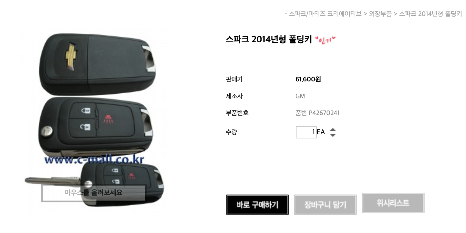 http://www.C-mall.co.kr 에서 스파크 2014년형 폴팅키 구입