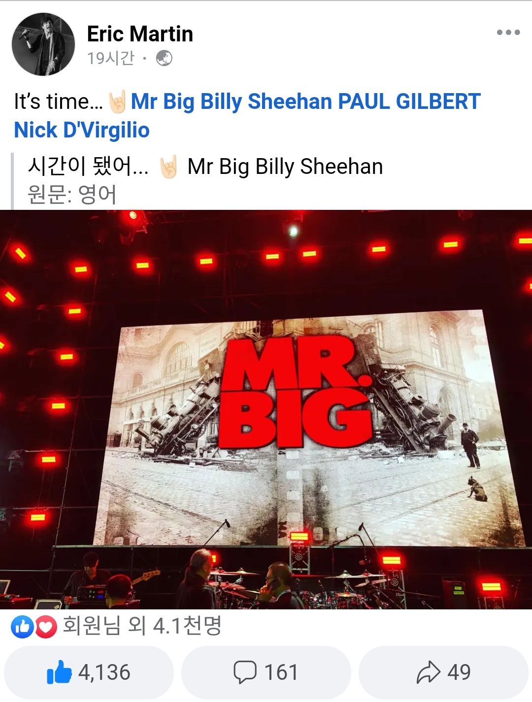 처음으로 해외에서 본 락페이자 미스터빅 공연인데 아티스트가 신나서 공연하는 한국에서 공연이 너무 그리웠다