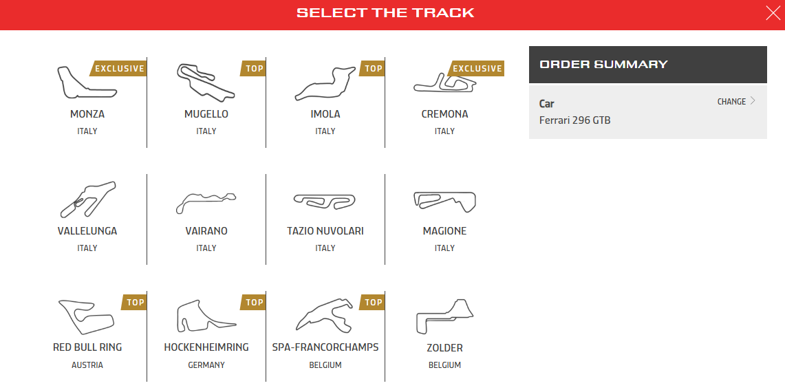 Pure sports 는 슈퍼카, 포뮬러카로 트랙데이를 운영하는 업체로, 아래와 같이 선택하면 체험 가능하다.